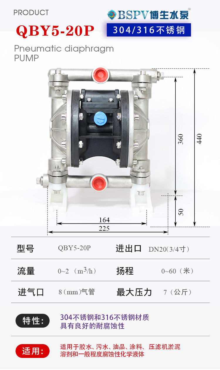 QBY5-20P型不銹鋼氣動隔膜泵