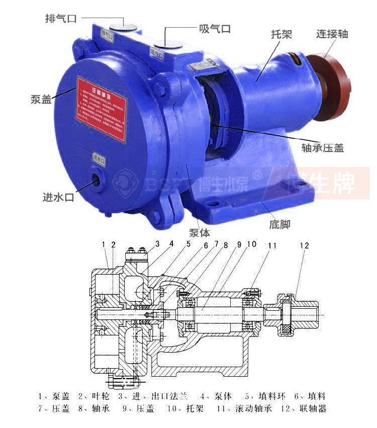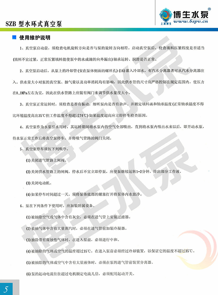 SZB懸臂式水環(huán)真空泵為單級單吸懸臂式水環(huán)真空泵,泵的出、入口對稱偏心向上。可供抽吸空氣或其它無腐蝕性、不溶于水、不含固體顆粒的氣體。吸入壓力為-0.086Mpa。目前制造的SZB型水環(huán)式真空泵型號有:SZB-4、 SZB-8。其中4(8)表示當柱高為520毫米時的氣量(升/秒)。